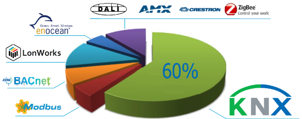 KNX shows an incredible market growth. It is a most popular standard and share in the total smart home world market with value of more than 60%.